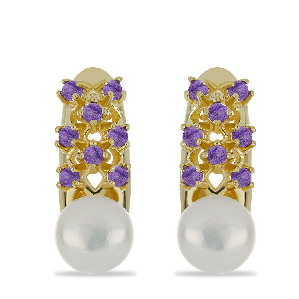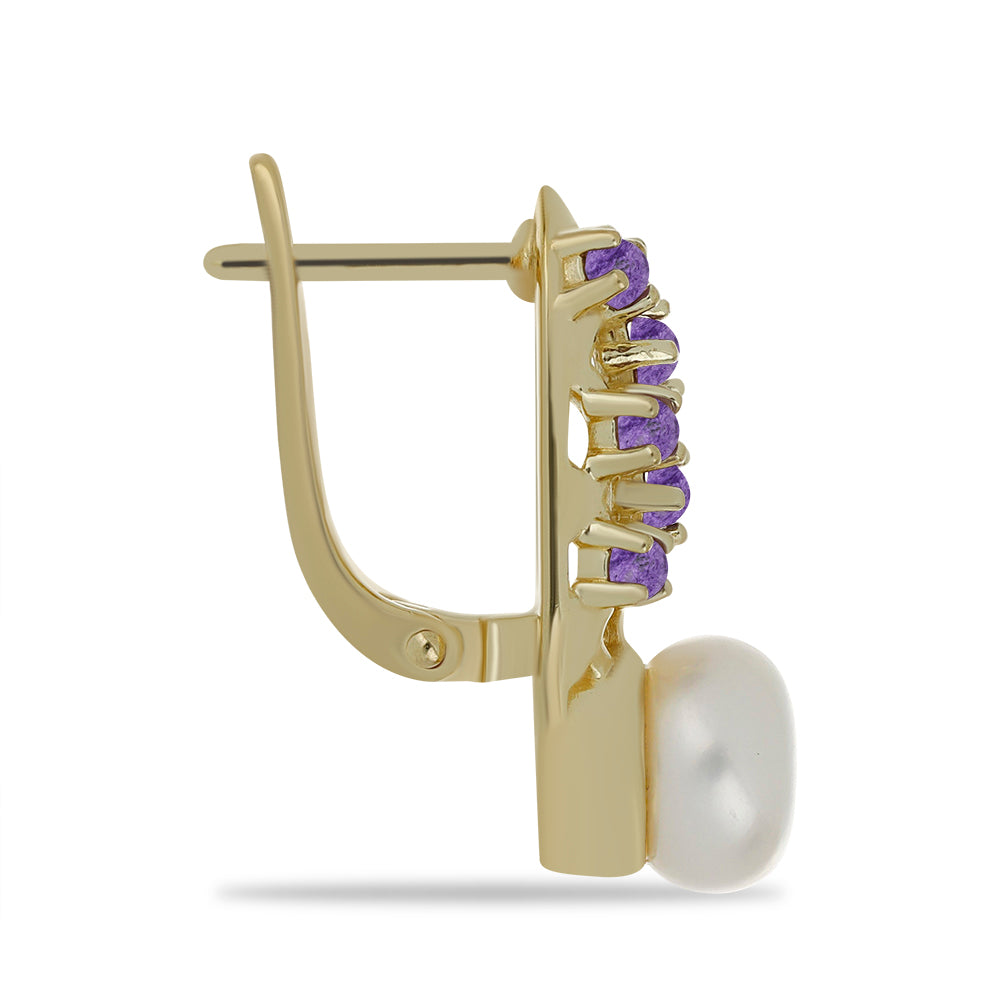 Pozlacené Stříbrné Náušnice s Čaroitem a Bílou Sladkovodní Perlou - Karátové číslo: 5.41. přibližná hmotnost: 6.79 gramů KÓD: Y57690 Velikost Šperku: 22.10 mm x 8.30 mm Zapínání náušnic: Ruský patent