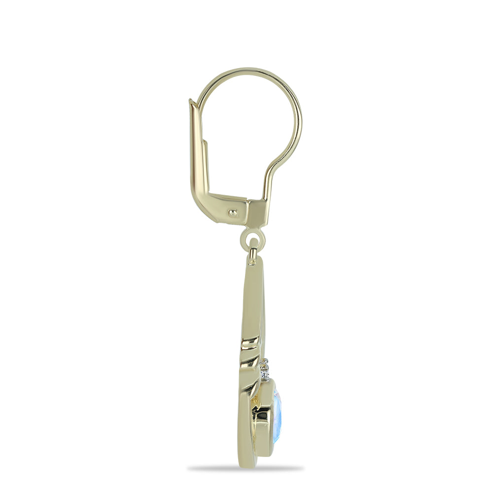 Pozlacené Stříbrné Náušnice s Duhovým Měsíčním Kamenem a Bílým Topazem - Karátové číslo: 1.61. přibližná hmotnost: 4.69 gramů KÓD: Y59012 Velikost Šperku: 32.00 mm x 12.60 mm Zapínání náušnic: Dámský patent