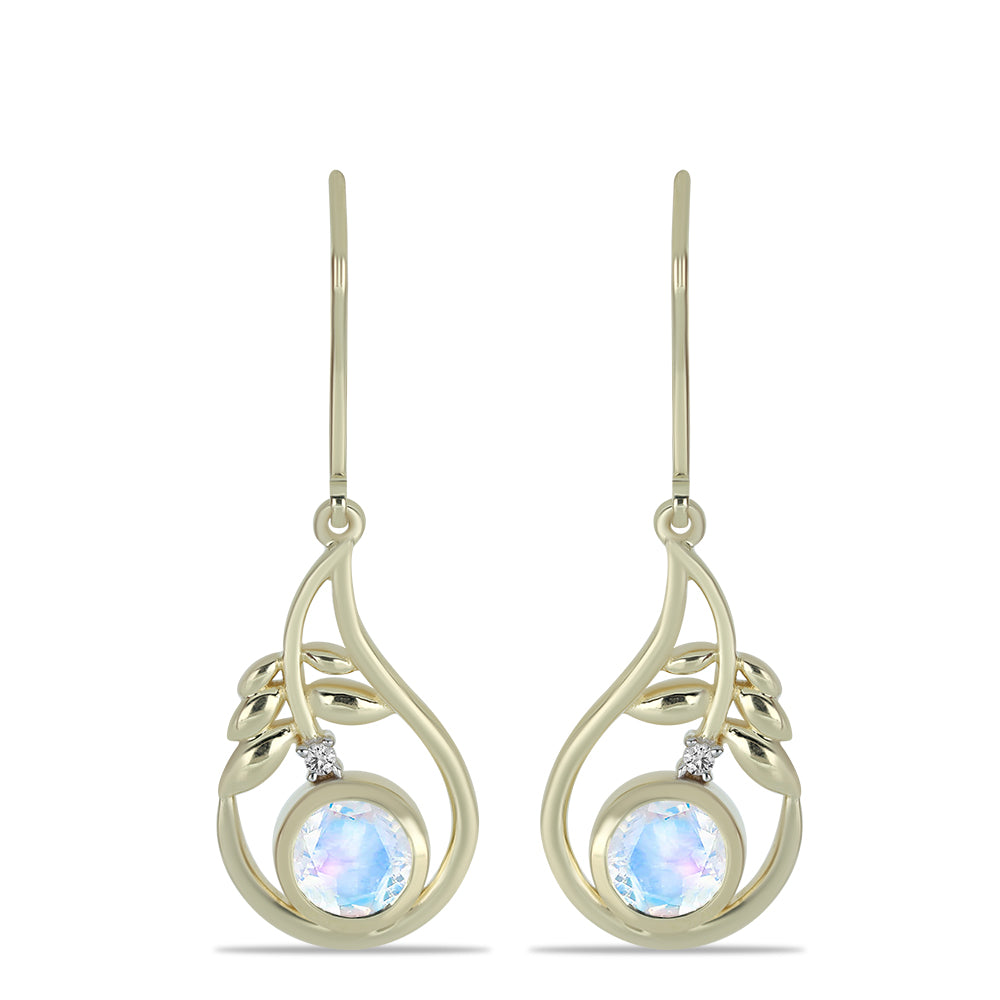 Pozlacené Stříbrné Náušnice s Duhovým Měsíčním Kamenem a Bílým Topazem