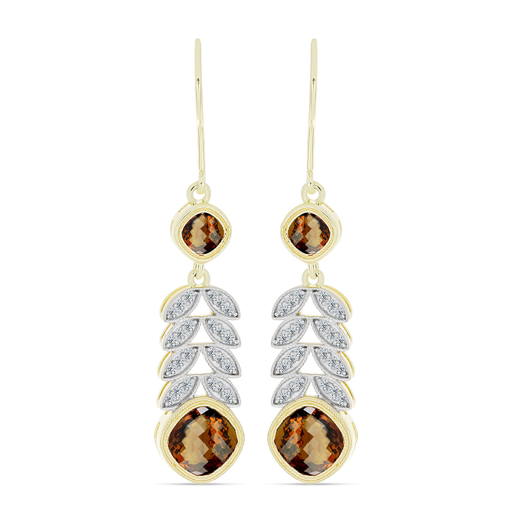 Pozlacené Stříbrné Náušnice s Koňakovým Křemenem a Bílým Topazem - Karátové číslo: 3.41. přibližná hmotnost: 6.83 gramů KÓD: Y59051 Velikost Šperku: 43.00 mm x 10.00 mm Zapínání náušnic: Dámský patent