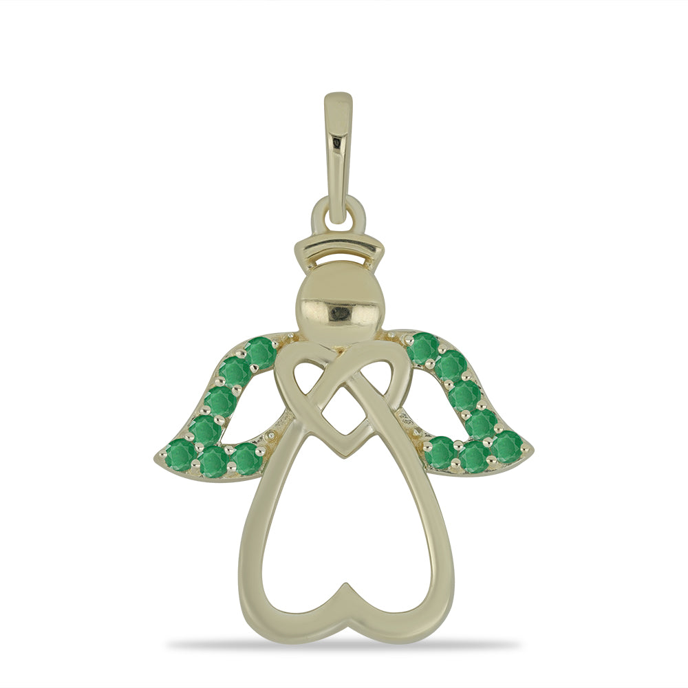 Pozlacené Stříbro 925/1000 - Přívěsek s Brazilským Smaragdem - Karátové číslo: 0.26. přibližná hmotnost: 2.21 gramů