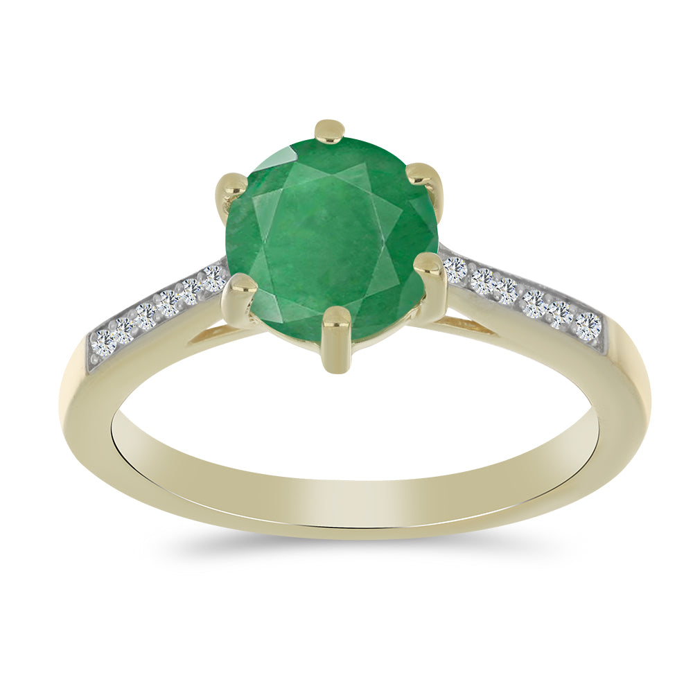 Pozlacené Stříbro 925/1000 - Prsten s Brazilským Smaragdem a Bílým Topazem - Karátové číslo: 2.12. přibližná hmotnost: 3.05 gramů