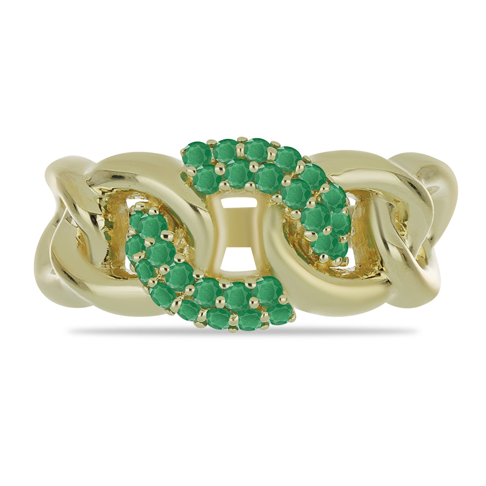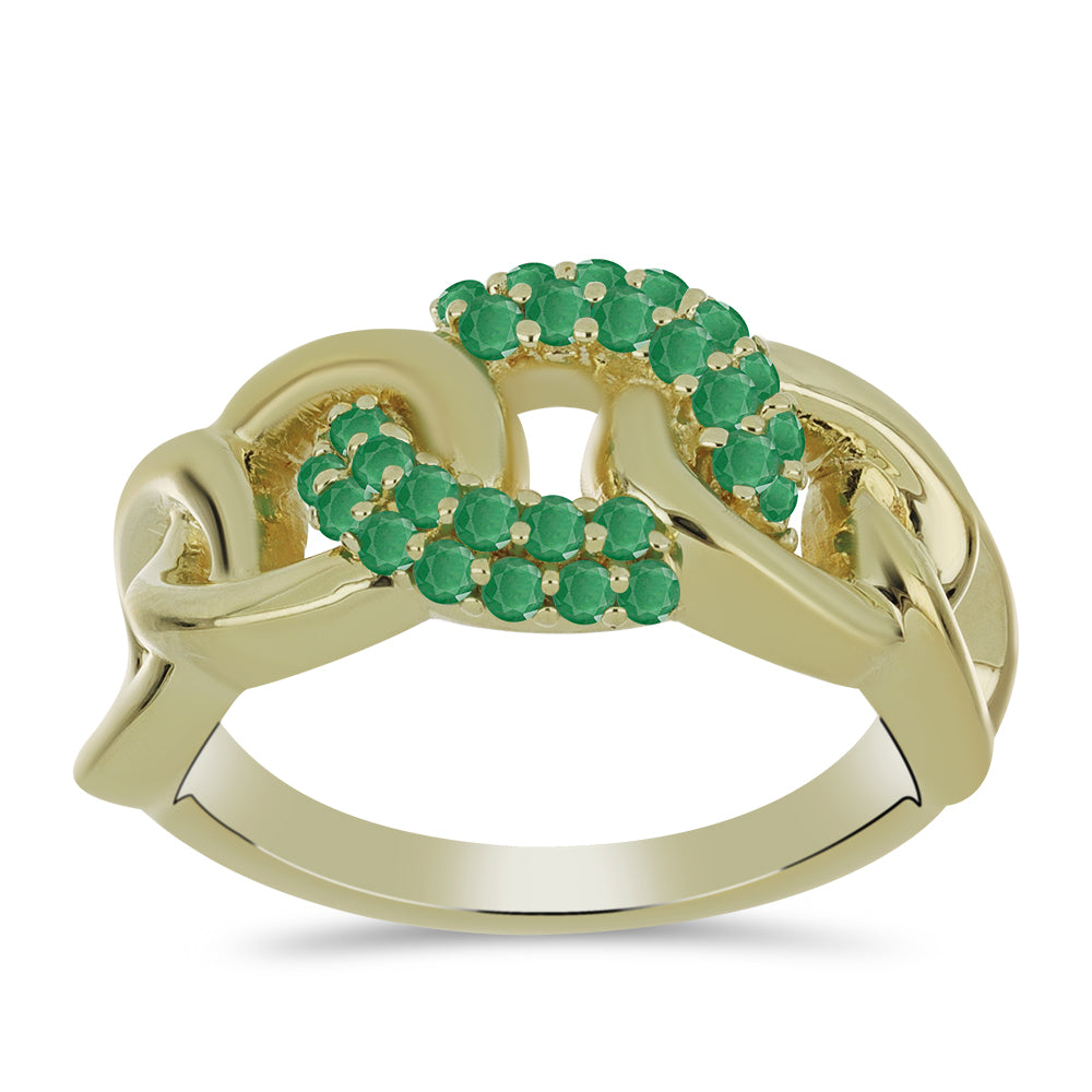 Pozlacené Stříbro 925/1000 - Prsten s Brazilským Smaragdem - Karátové číslo: 0.52. přibližná hmotnost: 4.89 gramů