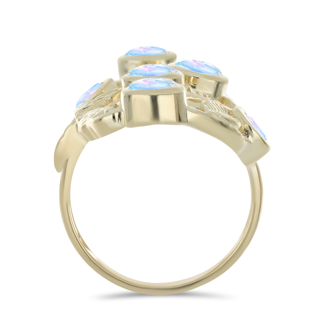 Pozlacený 925 / 1000 Sterlingové Stříbro Prsten s Duhovým Měsíčním Kamenem