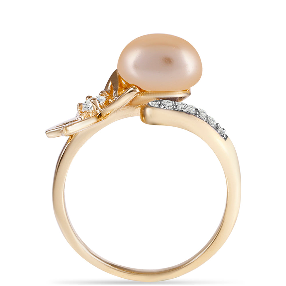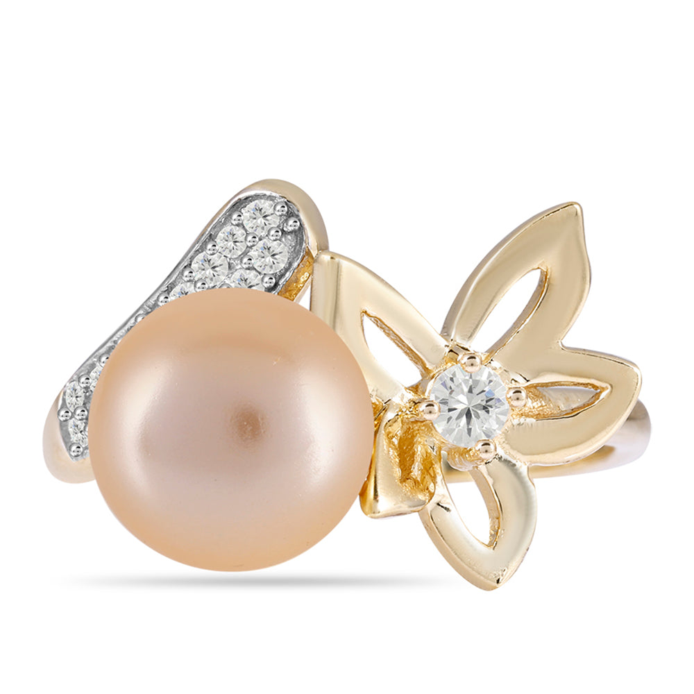Pozlacený Stříbrný Prsten - Karátové číslo: 4.93. se Zlatou Sladkovodní Perlou a Bílým Topazem přibližná hmotnost: 5.23 gramů KÓD: Y58223 Velikost Šperku: 16 mm x 23.73 mm