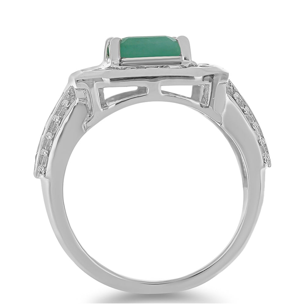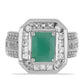 Stříbro 925/1000 - Prsten s Brazilským Smaragdem a Bílým Topazem - Karátové číslo: 3.54. přibližná hmotnost: 7.26 gramů KÓD: Y55305 Velikost Šperku: 16.36 mm x 24.67 mm