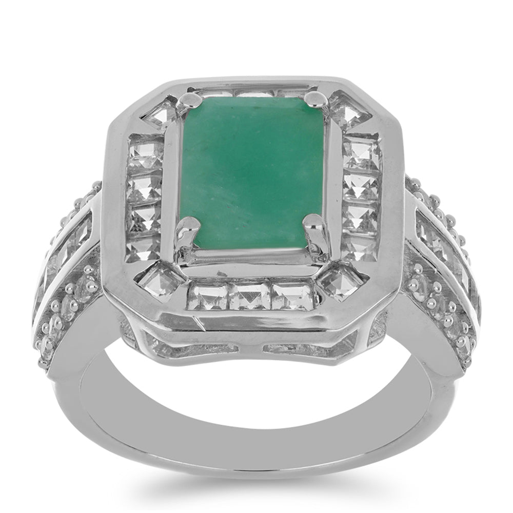 Stříbro 925/1000 - Prsten s Brazilským Smaragdem a Bílým Topazem - Karátové číslo: 3.54. přibližná hmotnost: 7.26 gramů