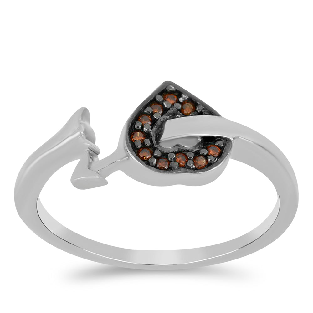 Stříbro 925/1000 - Prsten s Červeným Diamantem - Karátové číslo: 0.07. přibližná hmotnost: 2.1 gramů